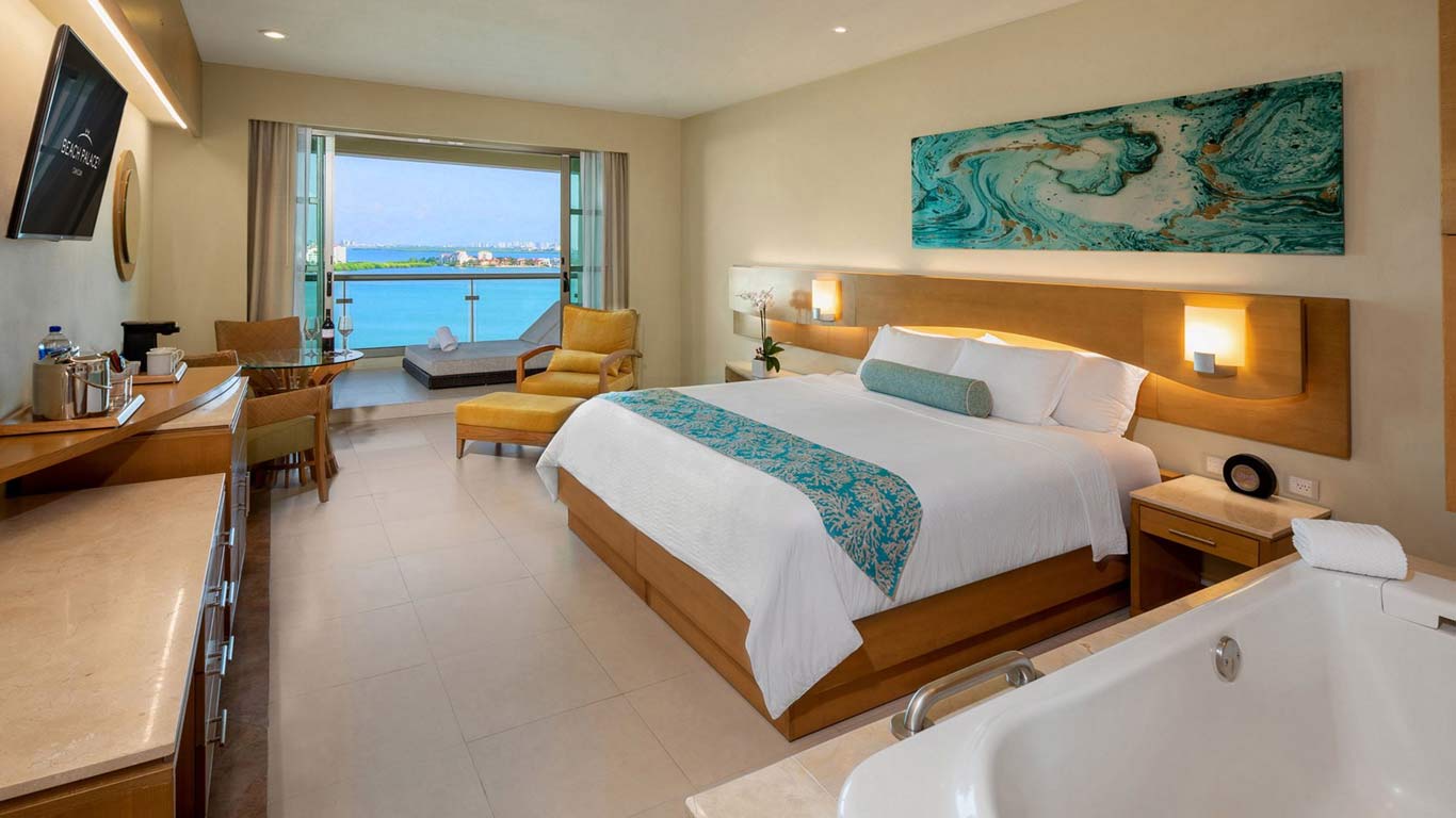 Beach Palace es un resort todo incluido frente al mar, ubicado en las playas de arena blanca de Cancún. Idealmente diseñado para todas las edades, su arquitectura fresca y ultramoderna acentúa las elegantes características del hotel. Con alojamiento de élite y vistas a la laguna Nichupté y al mar Caribe, cada elegante habitación cuenta con un jacuzzi doble y un balcón privado, brindando a los huéspedes hermosos paisajes con una relajante elegancia.