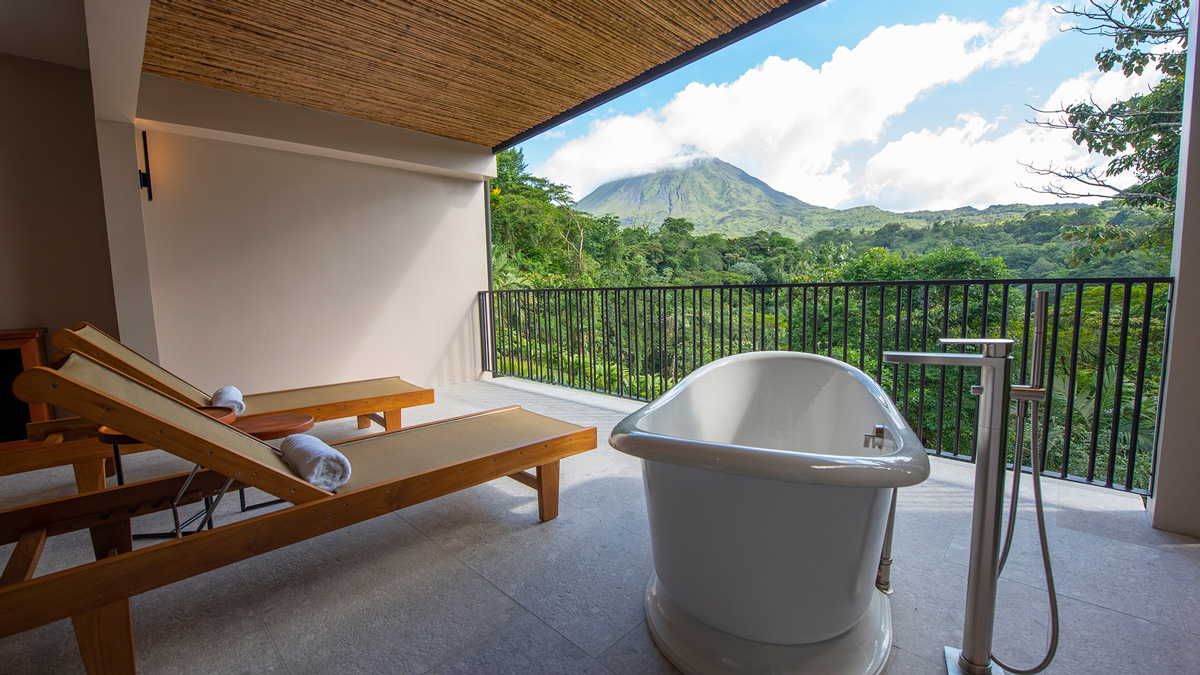 Tabacón Thermal Resort & Spa es una experiencia vacacional exclusiva, basada en el plan europeo, y ubicada en medio de la selva tropical en La Fortuna de San Carlos, Costa Rica. Esta propiedad única en Costa Rica ofrece alojamiento de lujo, un spa galardonado y un servicio amable en un magnífico entorno tropical, cerca de la base del Volcán Arenal. El complejo está situado en un entorno exuberante con doce piscinas y lagunas naturales de aguas termales, piscinas termales, exóticos jardines y senderos, además de numerosas comodidades, diseñadas para una experiencia de vacaciones perfecta y relajante.